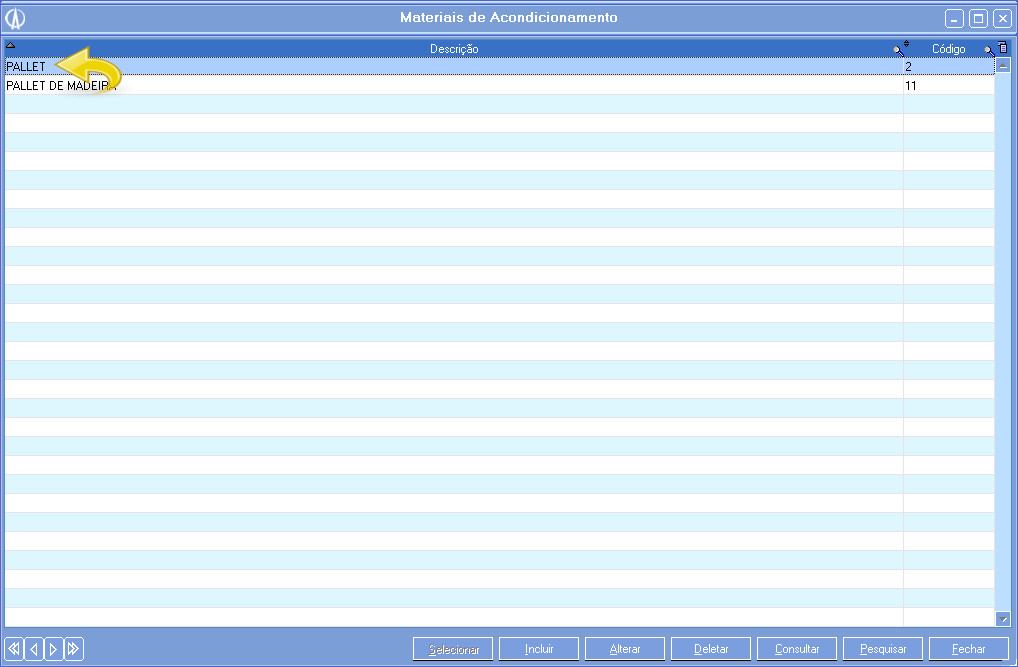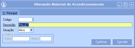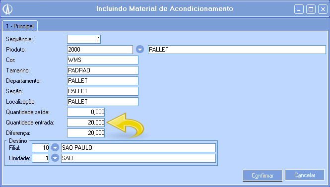 • Material de Acondicionamento: Escolha qual Material de Acondicionamento será utilizado, pressionando F9 ou inserindo o código do produto.