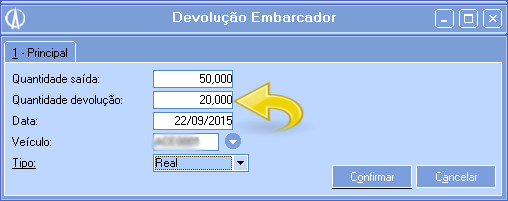 3.4. Informe a quantidade de devolução e a placa do caminhão que irá transporta-la.