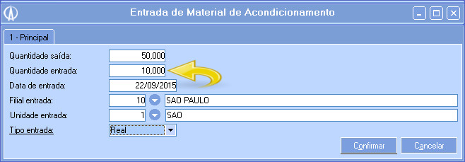 • Quantidade Entrada: Informar a quantidade de material que foi trazido até a filial