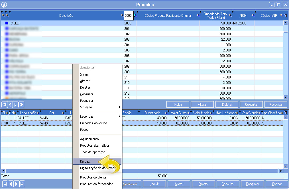 4.5. Para visualizar pelo Kardex, clique com o botão direito do mouse e depois acesse Kardex