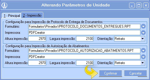 1.4. Na aba 2-Impressão defina os formulários de impressão. Clique no botão Confirmar para salvar a alteração.