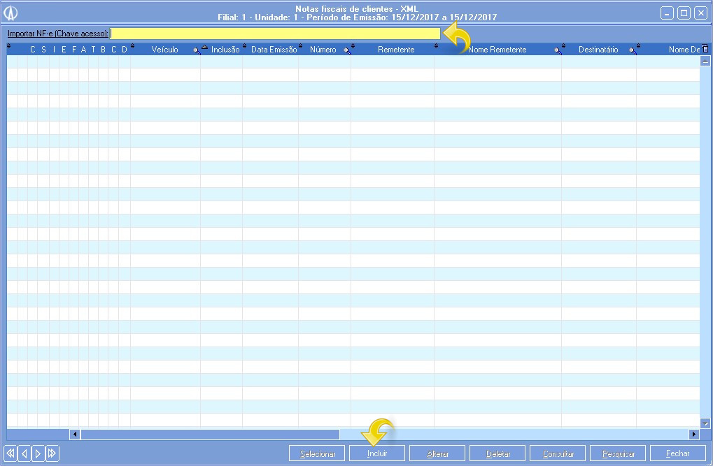 1.1 Informe a chave de acesso no campo Importar NF-e {Chave de acesso} OU faça a inclusão manualmente, clicando no botão Incluir.