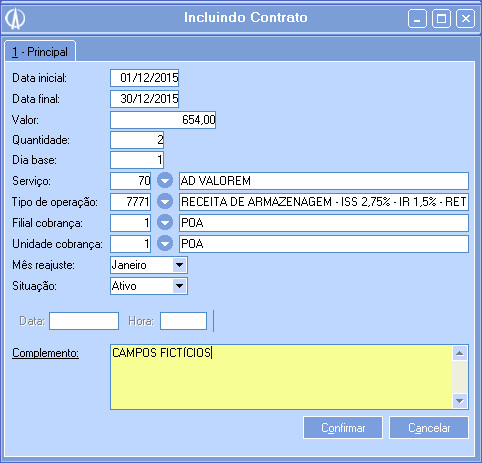 • Unidade Cobrança: Selecione o tipo de operação padrão do Contrato.