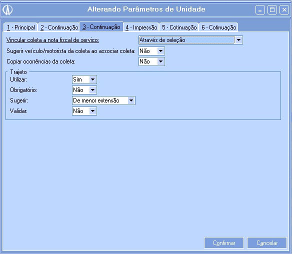 - Filtrar por filial/unidade emissão ao selecionar coletas: Informe se deseja filtrar por filial/Unidade ao selecionar coletas.