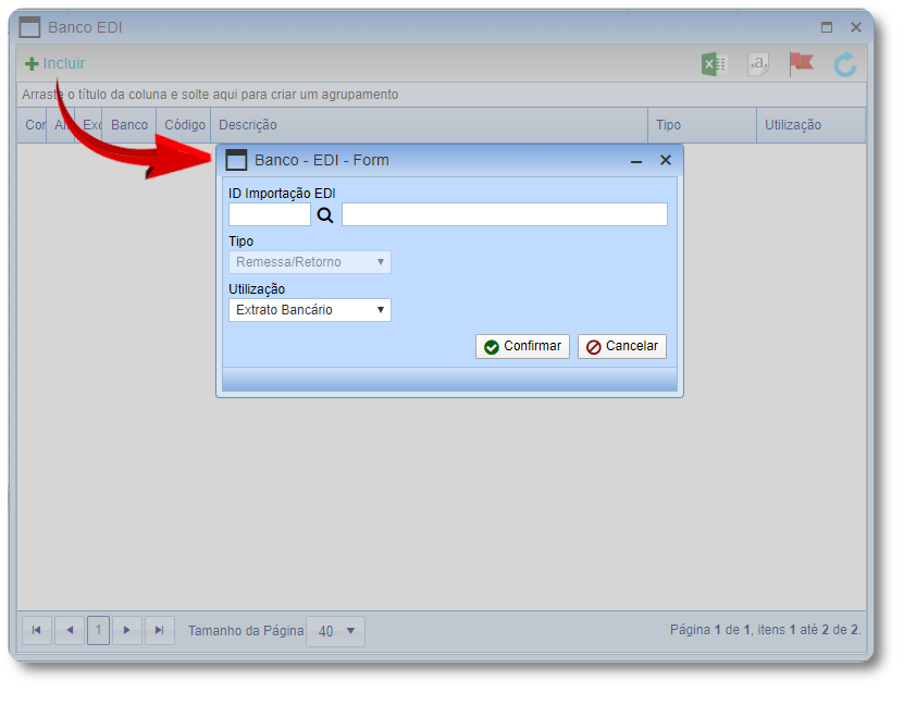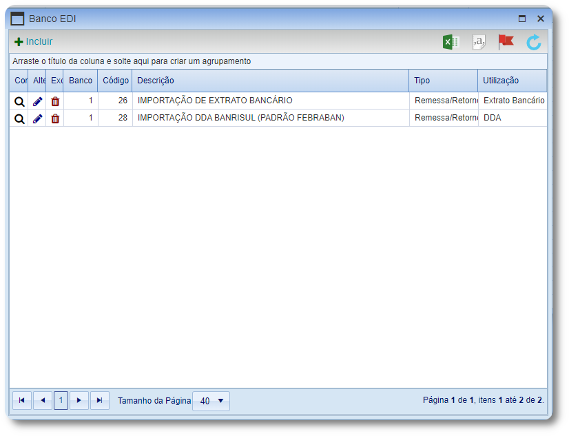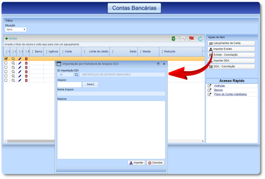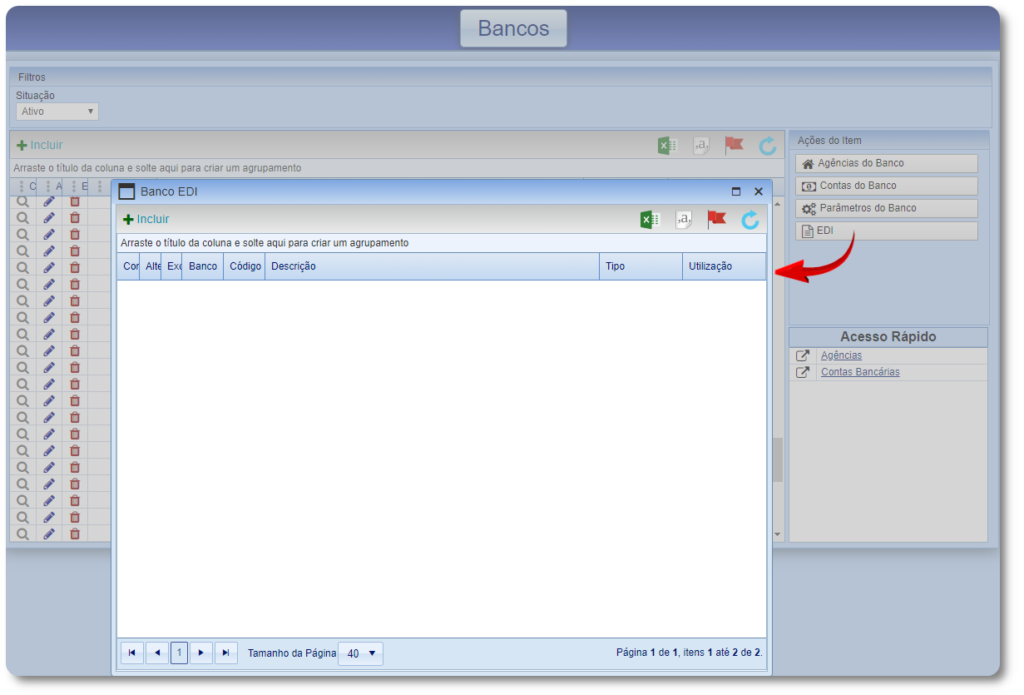 1.1 Ao acessar a tela “Bancos“, pressione a ação do item EDI.