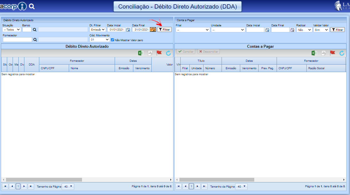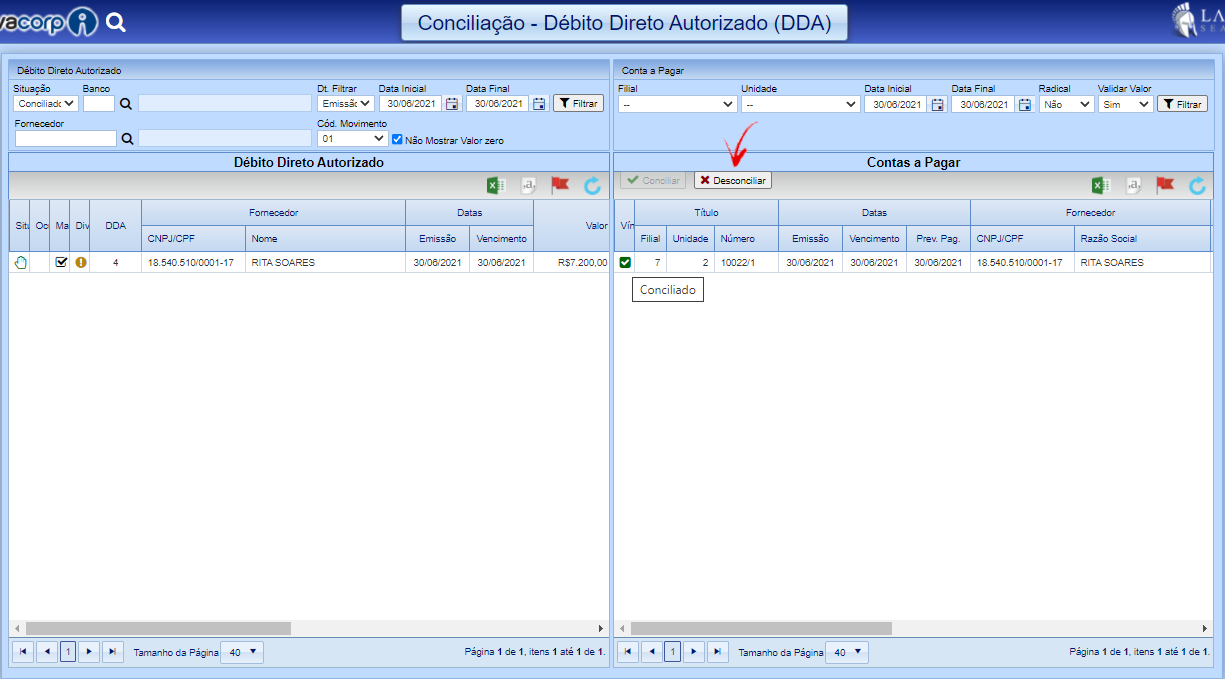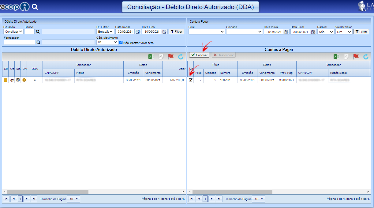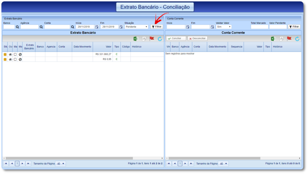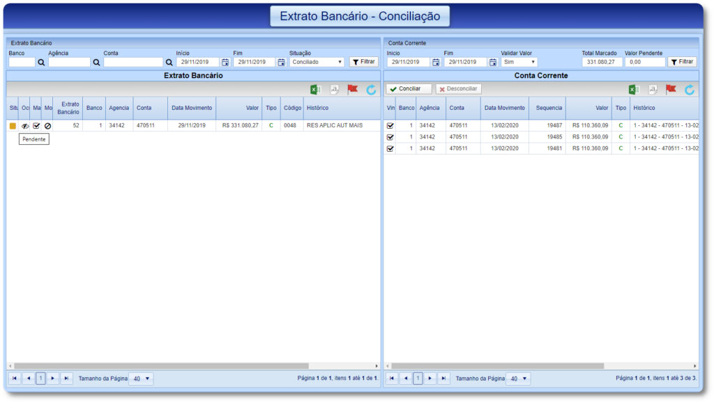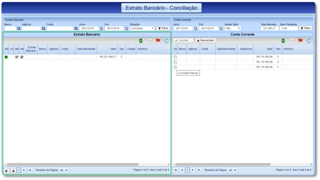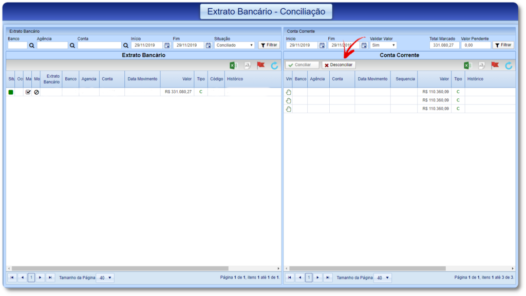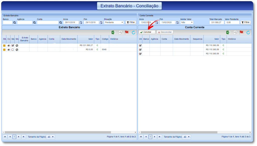 Para realizar a conciliação siga o passo a passo abaixo de acordo com a opção desejada.