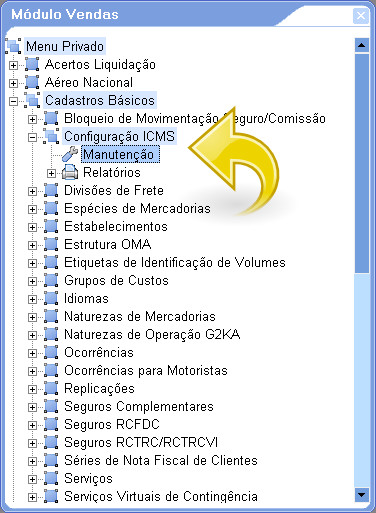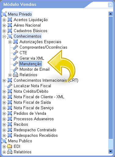 3. Depois de ter efetuado os passos acima, vá ao módulo Vendas selecionando a opção Conhecimentos/Manutenção.