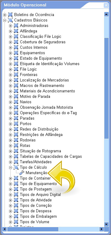 1. Para começar acesse o módulo Operacional/ Cadastros básicos/ Tipo de cálculo/ Manutenção: