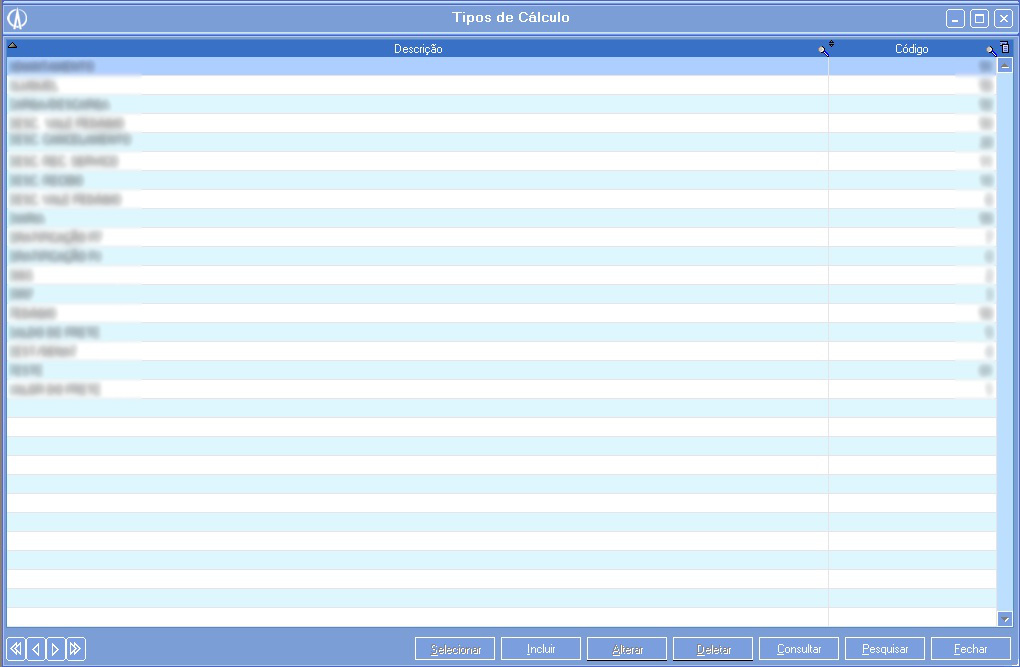 1.1. A tela de manutenção de tipo de calculo será exibida. Clique no botão Incluir.