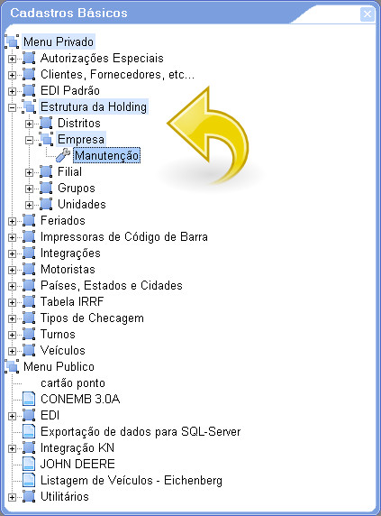 1. Acesse o módulo Cadastros Básicos e selecione Estrutura da Holding/Empresa/Manutenção: